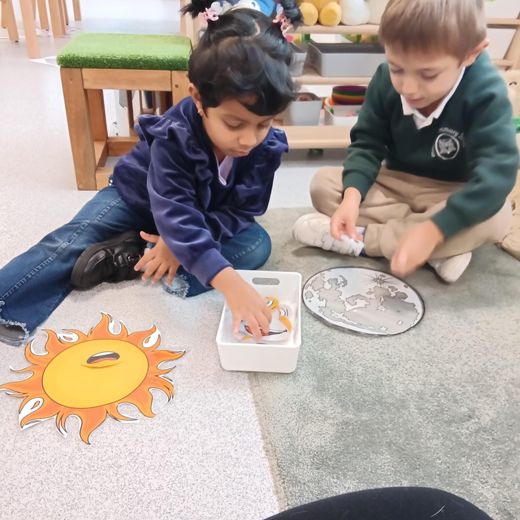 They also explored the sand tray, using their hands to search for animals hidden beneath the sand, encouraging curiosity and sensory play.